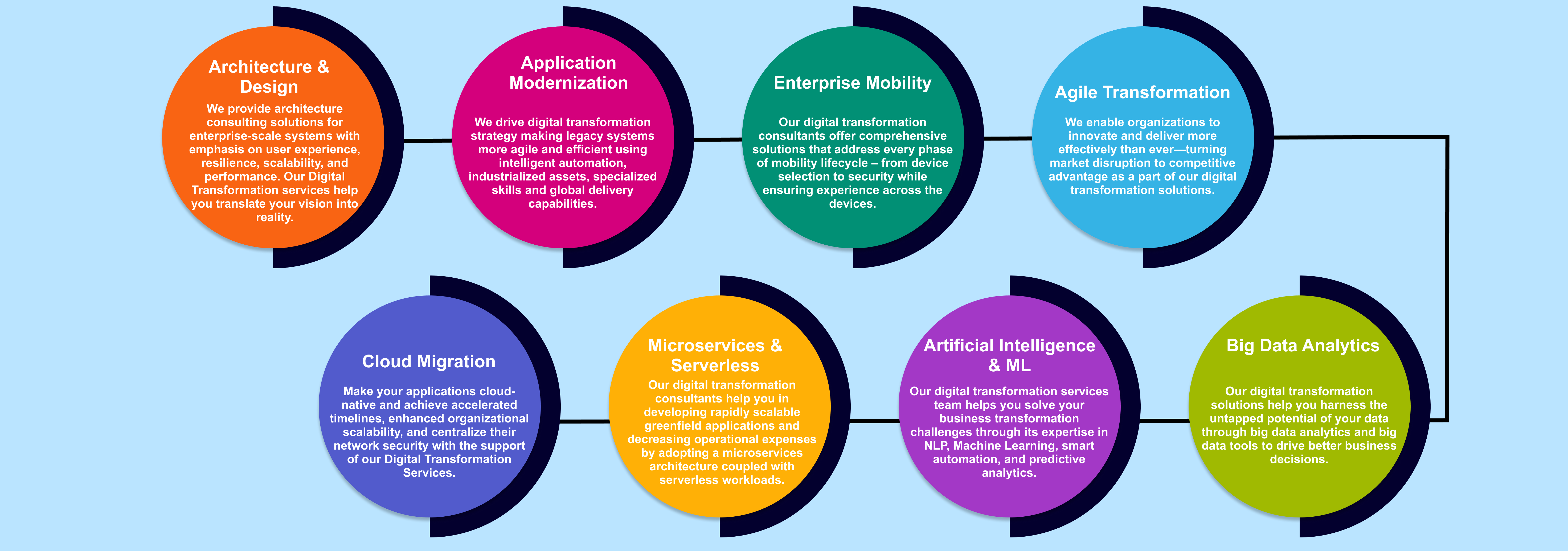 Wistriz is at the forefront of delivering cutting-edge digital transformation solutions, empowering businesses to thrive in the digital age. As a leading provider of digital transformation services, we are committed to revolutionizing your business processes, enhancing customer experiences, and driving sustainable growth. We offer a comprehensive suite of digital transformation services designed to meet the unique needs of your business.